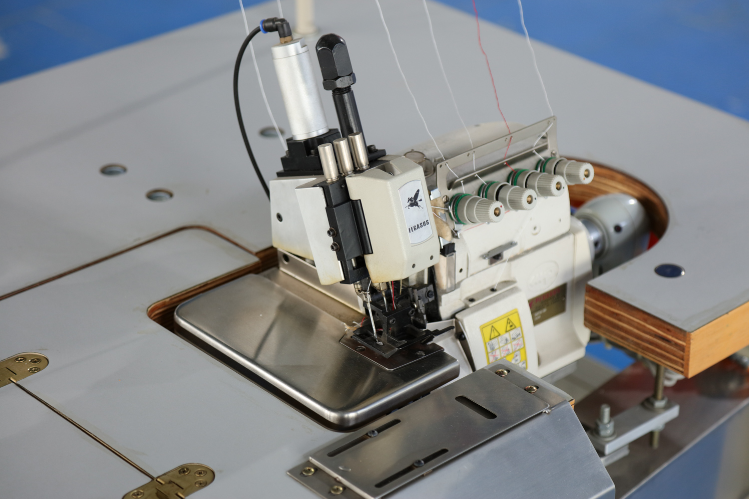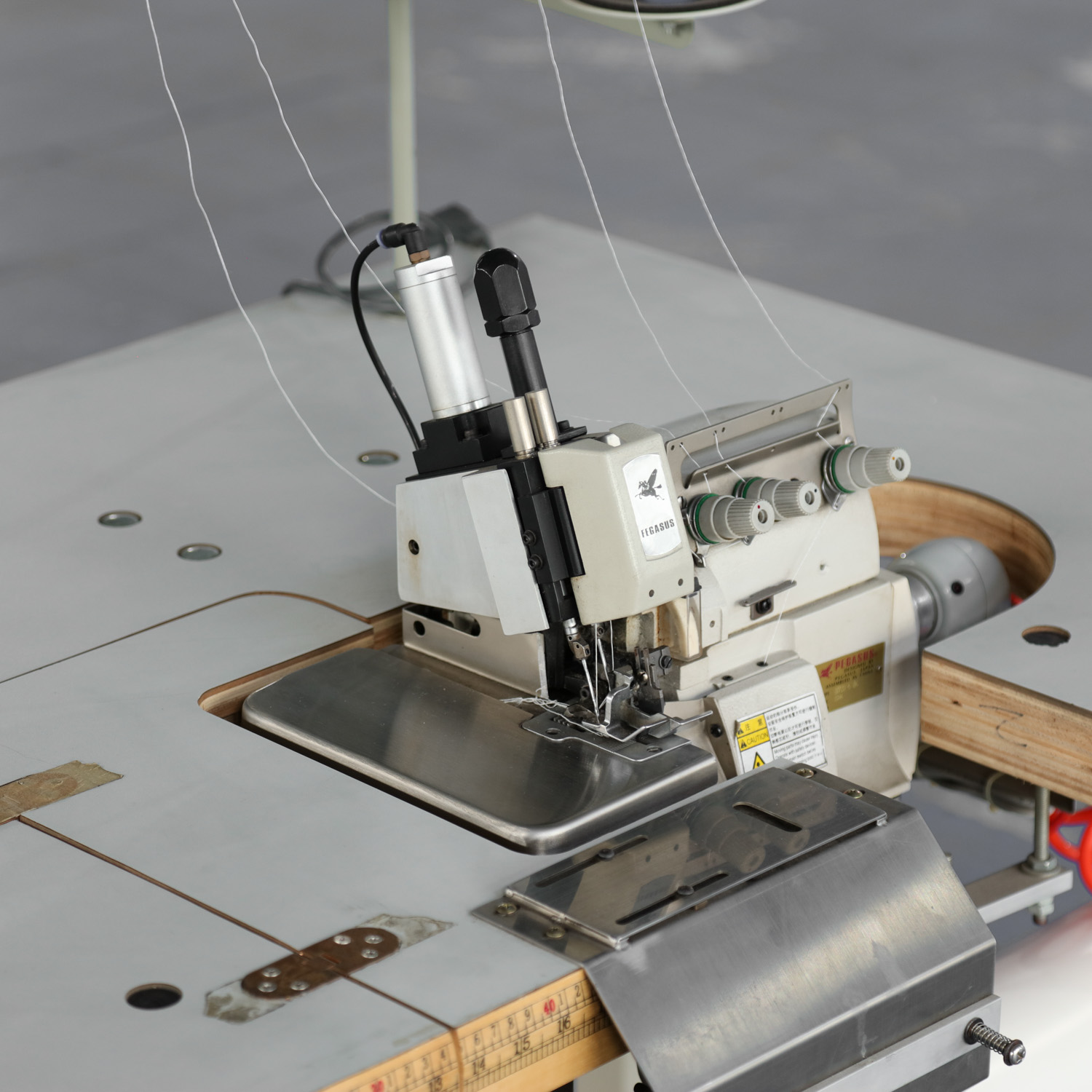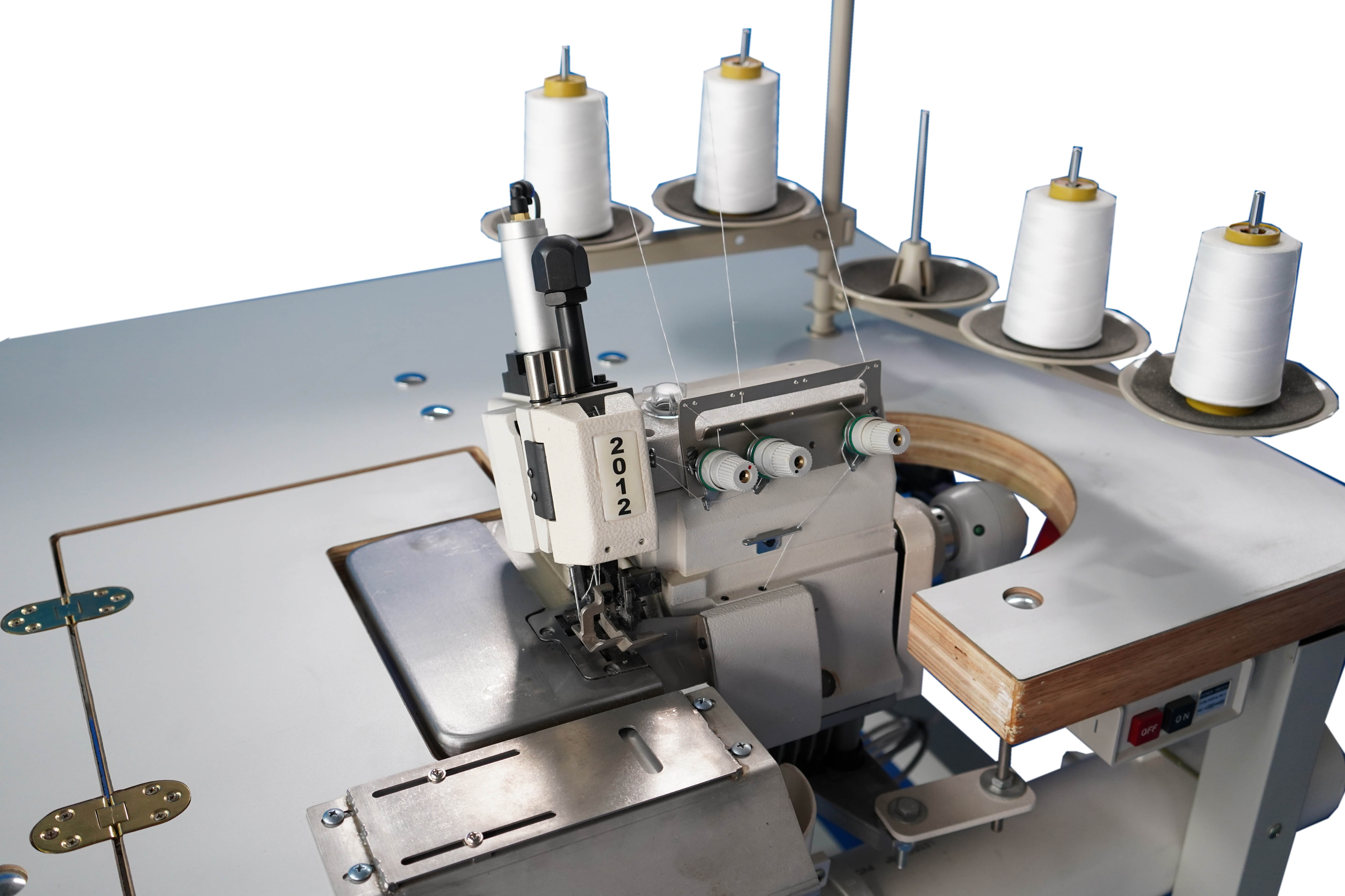 主要用于自動化鎖邊 1.機(jī)頭采用雙針雙栓直針設(shè)計 2.具有針線冷卻裝置,使用白礦油冷卻及潤滑,有助于避免斷針、斷線、跳線等現(xiàn)象 3.采用進(jìn)口電子定位馬達(dá)及控制器控制車縫速度 4.采用氣動控制壓腳的自動提升,運行平穩(wěn),噪音低 5.飛馬技術(shù)組裝機(jī)頭 |