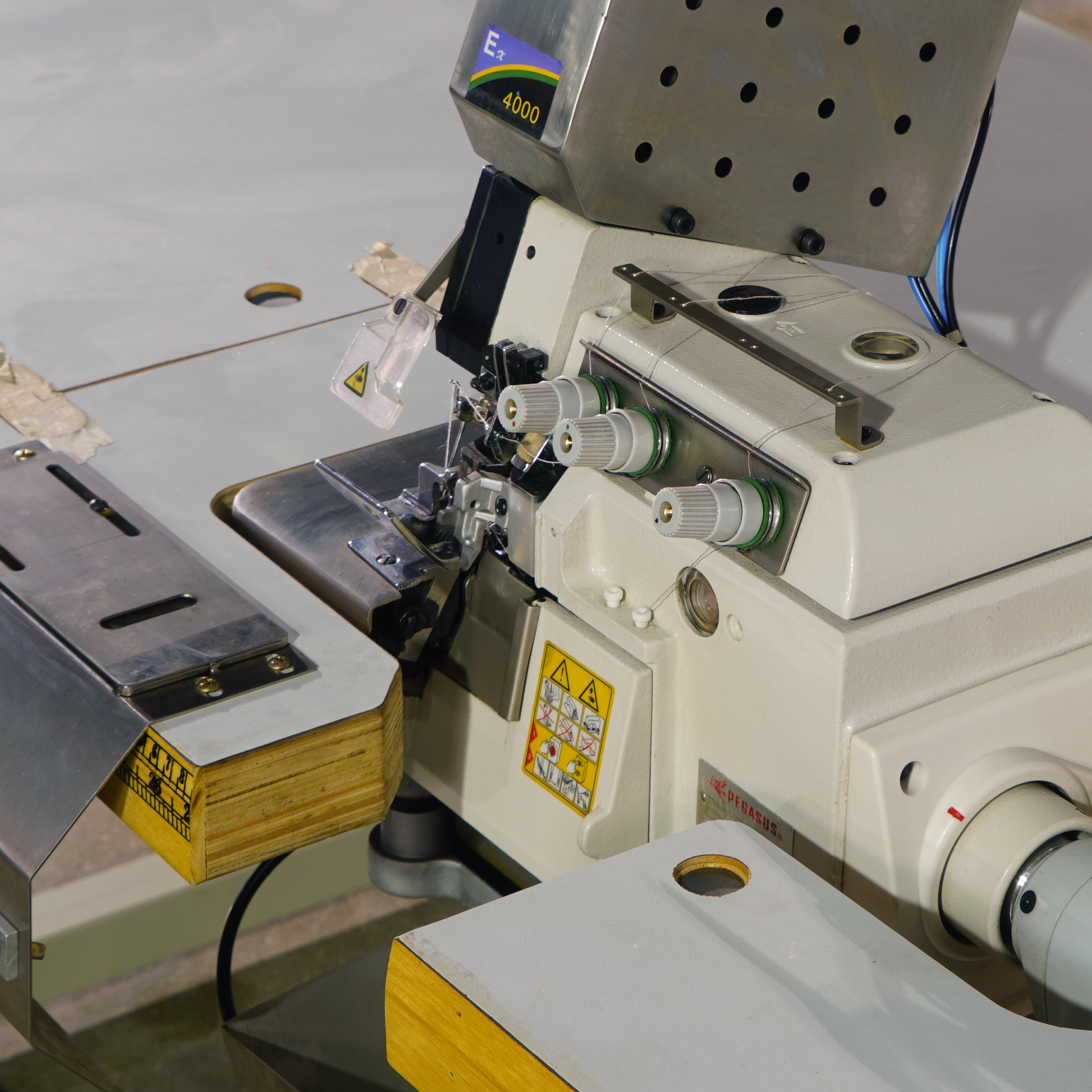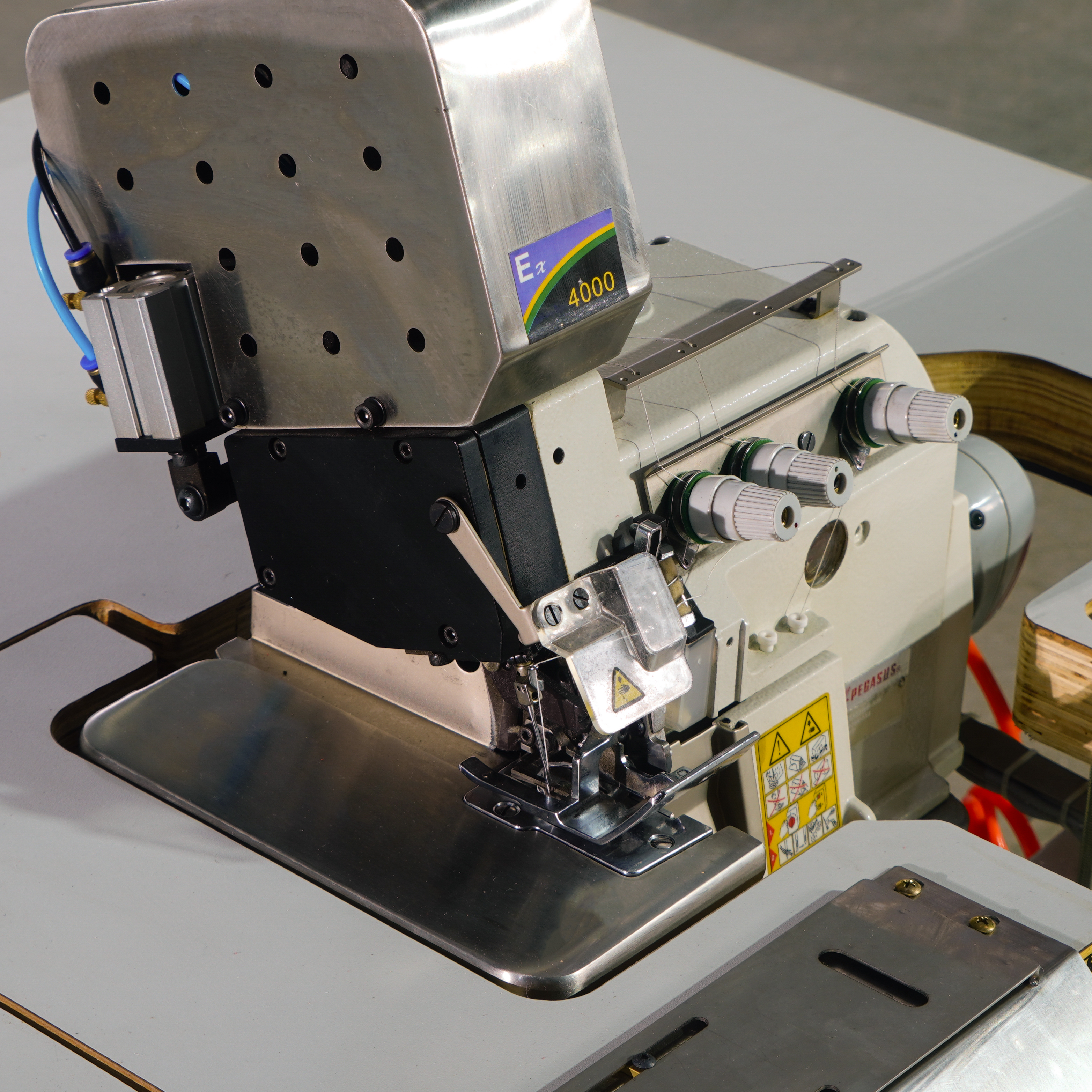 本設備主要用于床墊絎縫面料,超厚布料的鎖邊,井可自動將連帶于床墊邊緣的無紡布縫緊于面料上 1.機頭采用直針設計,最高轉速可達每分鐘7000轉 2.機頭具全自動供油系統(tǒng),可充分潤滑每一運轉部分,并具可拆卸式濾油裝置,自動濾油器可視需要清理或更換 3.按田式調整密,不需要換凸輪,操作方便 4.可微調差動比,精確調整送布齒的差動比率 5.具針線冷卻裝置使用白礦油卻極潤滑,有助于避免斷針、斷線、跳線等現象 6.采用雙針五線同步,配備強力輔助送布系統(tǒng),布縫時送料精確,縫線美觀 7.采用啟動控制壓腳的自動提升,采用編碼器控制針位 8.運行平穩(wěn),噪音低 |