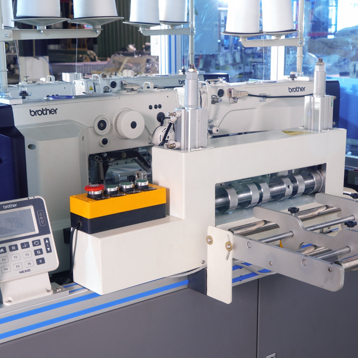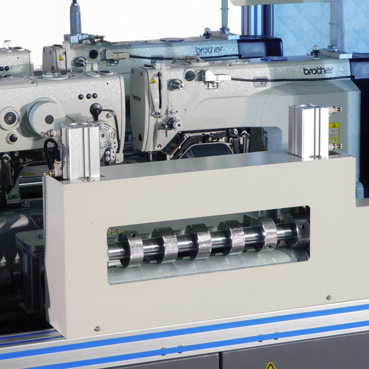 主要用于床墊側(cè)面料的花樣車縫 1、采用 4 個日本有梭縫紉機頭 , 四個機頭可同時工作也可分開獨立工作 , 生產(chǎn)力更高效 2、專業(yè)控制系統(tǒng)可編程式設(shè)計界面 , 觸摸屏控制、操作更方便 3、X 左右移動、羅拉送料采用伺服及步進電機精確度高 4、16 軸全自動控制可全自動也可獨立軸控制 , 高精度花型車縫 5、自動剪線無線頭 6、具有自動收送料裝置、動作同步 7、可根據(jù)客戶自定花樣設(shè)計 |